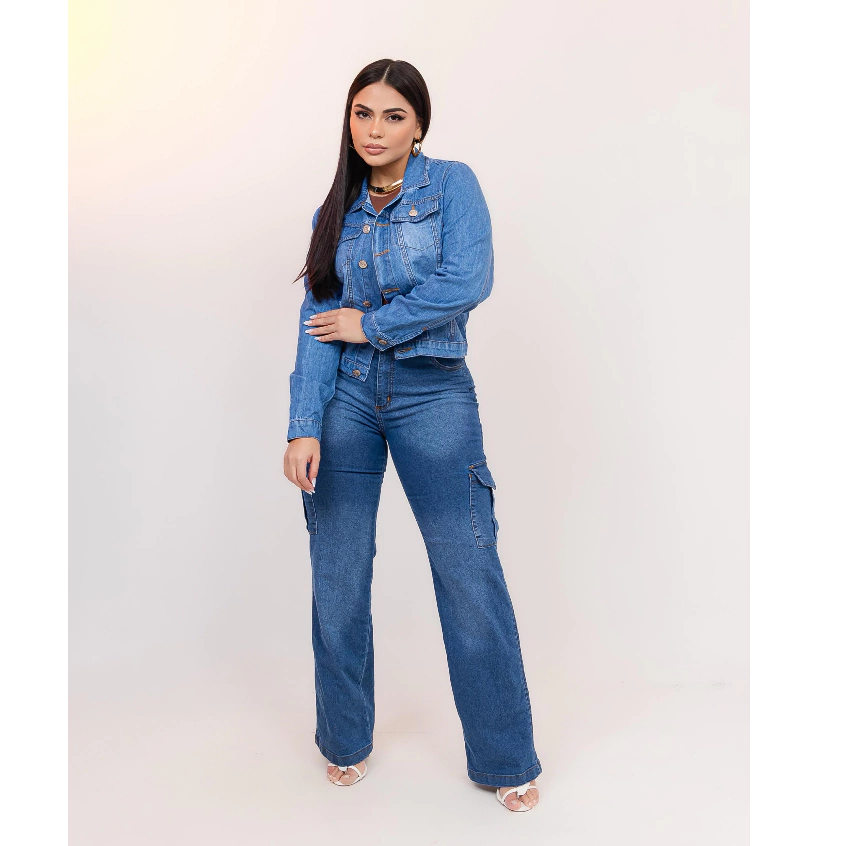 Jaqueta jeans feminina tendência P M G GG manga longa destroyed modelo cropped moda blogueira gringa manga comprida inverno frio casaco