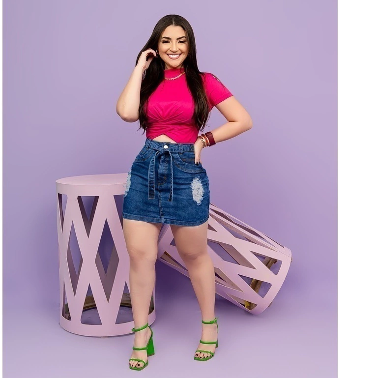 Short e Saia Jeans Feminino Cintura Alta Com Lycra Levanta bumbum Cós Desfiado